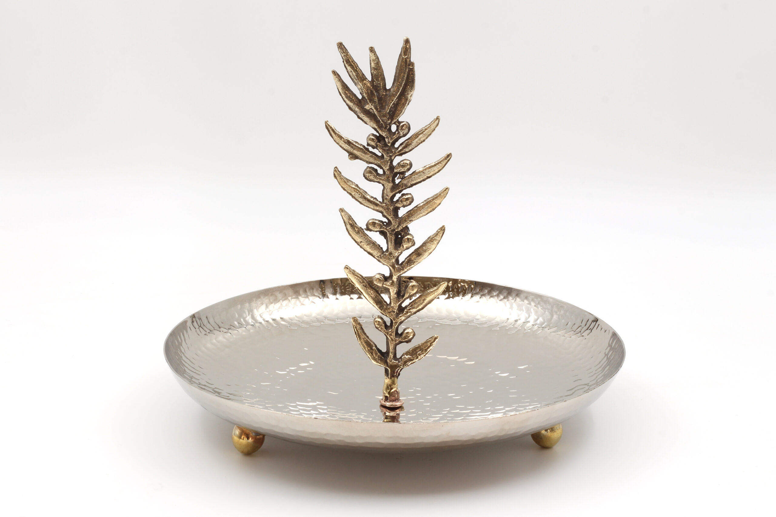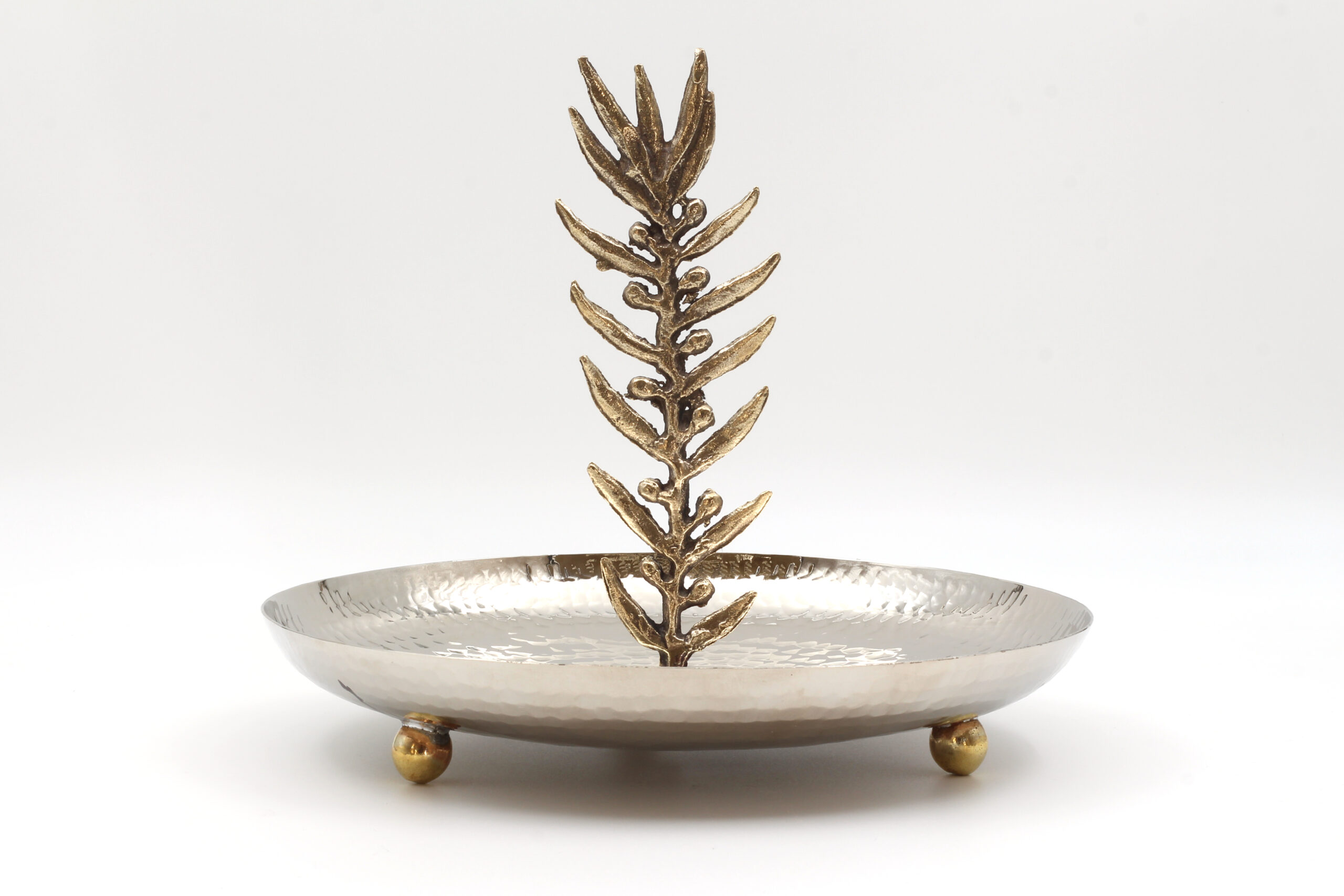 BAKIR GÜMÜŞ KAPLAMA YAPRAK MOTİFLİ SUNUMLUK